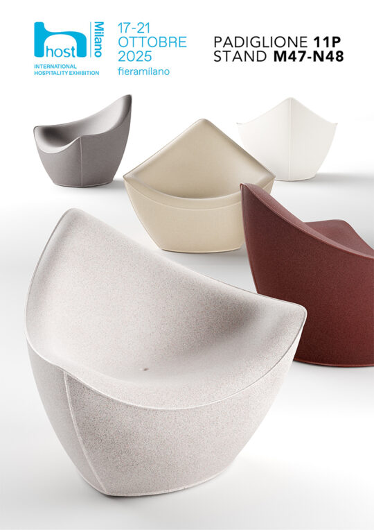 Plust Collection presents the new VELA furniture family, designed by BrogliatoTraverso, at Hall 11 P, Stand M47-N48, during the Host hospitality and catering exhibition from October 17 to 21, 2025.