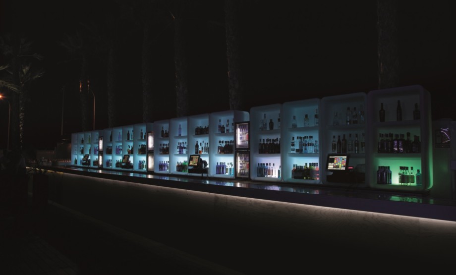 Matched with the “Bartolomeo” bar counter is suitable for housing catering utensils, especially bottles and glasses. Thanks to the internal lighting system, every object is crossed by the light, there by creating elegant colour and transparency effects.