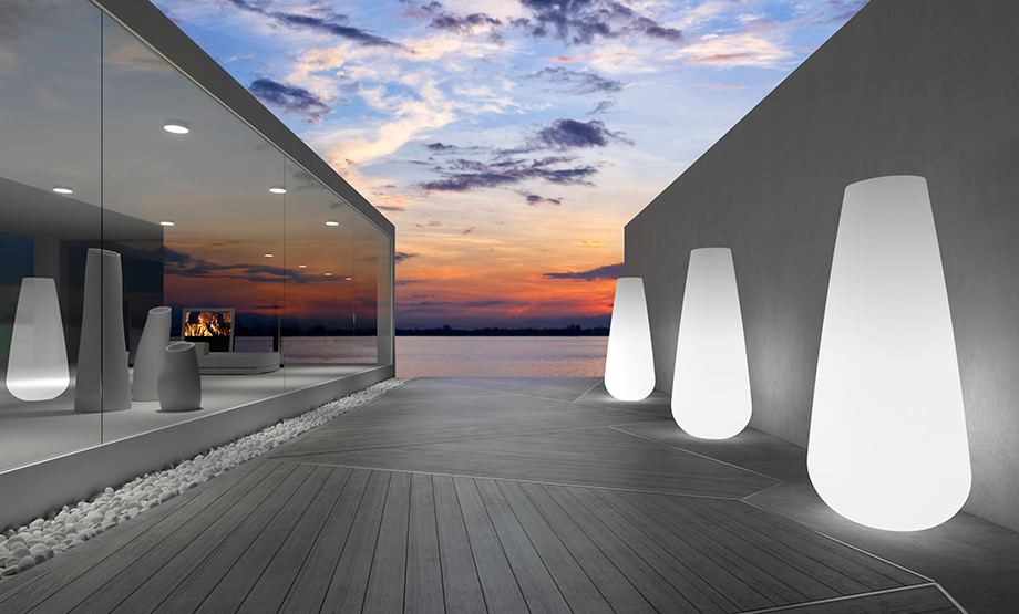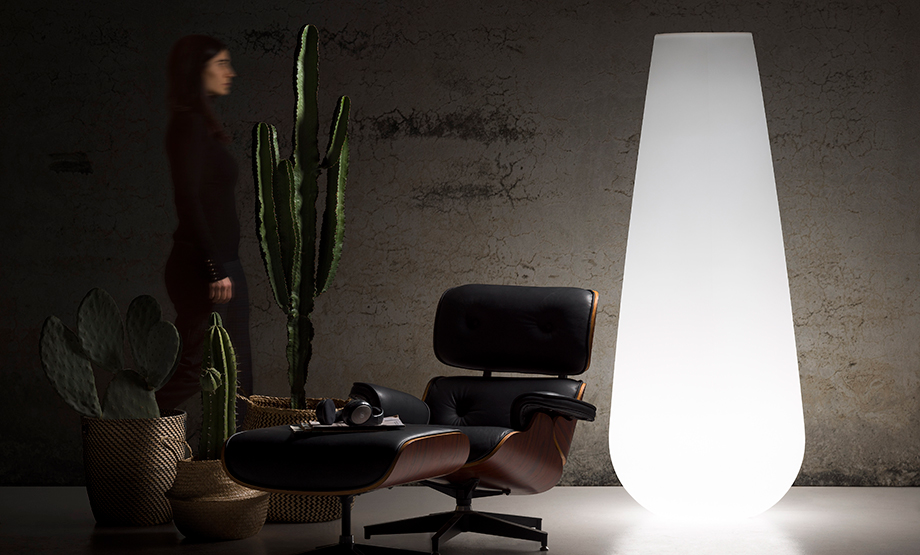 Ideal for plants or green medium-sized vertical development decorations, both in indoor and outdoor environments. In luminous version This vase is suitable to create situations of suffused light in areas with traffic or large areas, it contributes to creating furnishing solutions of great impact, with its imposing dimensions.