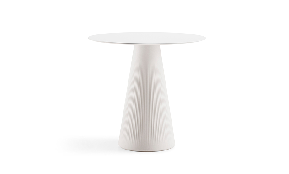 / 2021 design Marco GregoriTable with great stability requiring an HPL top, chosen separately. Its ribbed surface creates a unique play of shadows while the particular finishes recall natural materials. In the white light version, the table can be lit with a special lighting kit.