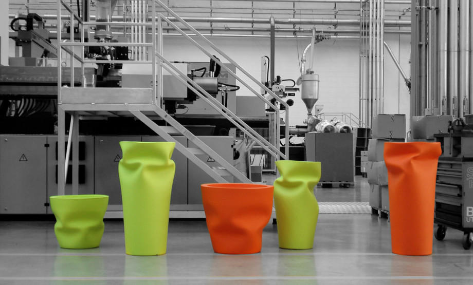 / 2009 design JoeVelluto (JVLT)“Saving/Space/Vase” undergoes a process of “compression” immediately after being removed from its mould, when the material is still partially malleable for a few minutes.