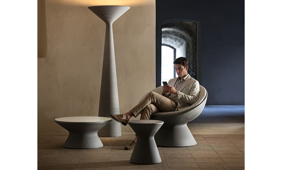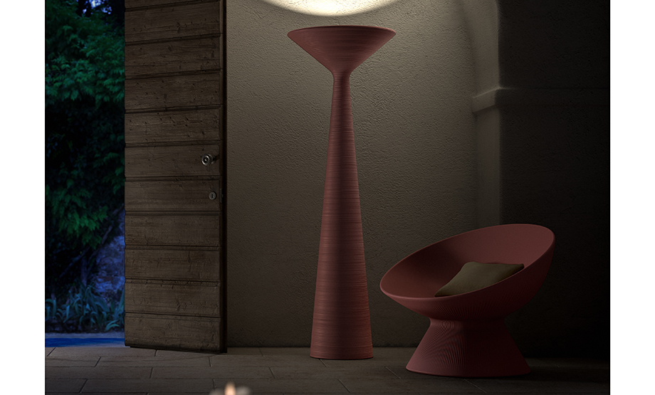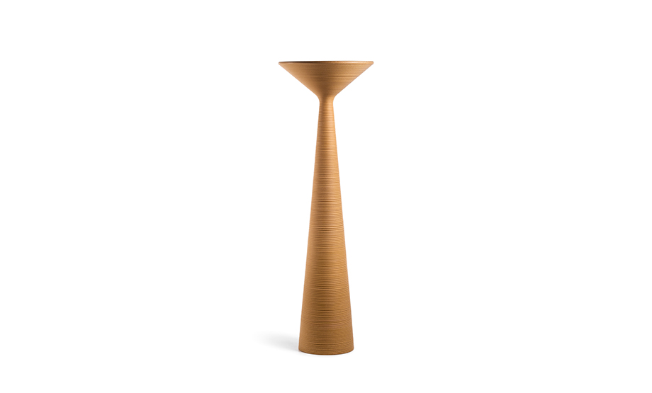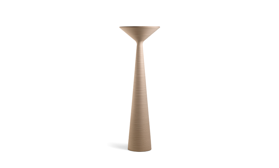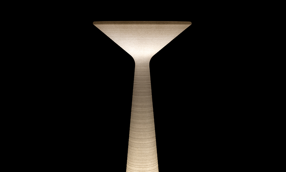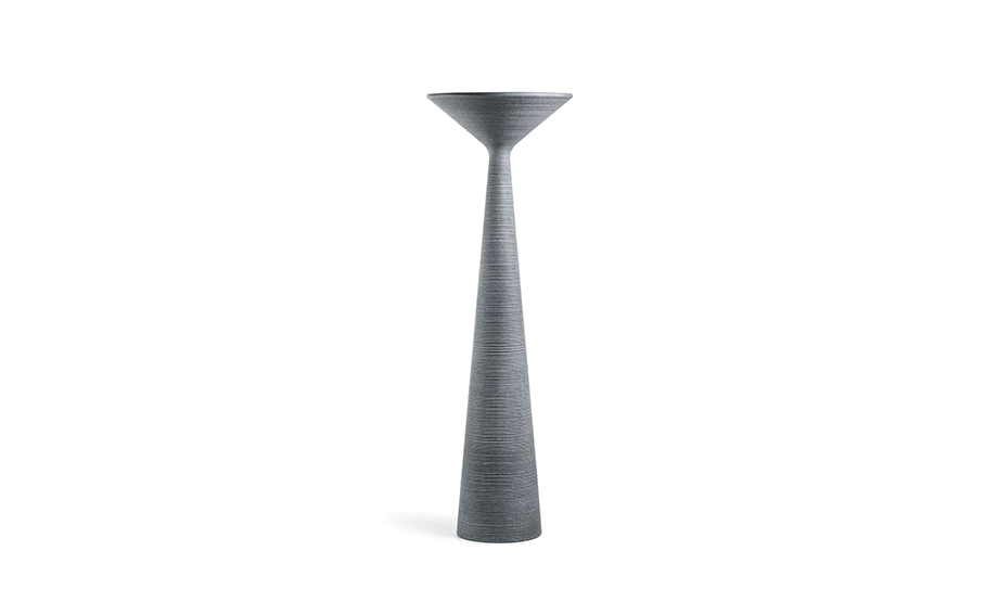A classic geometry, revised in a contemporary perspective and characterised by a surface texture that makes it a living item, with a strong material perception, almost as if it were a sculpted stone column.