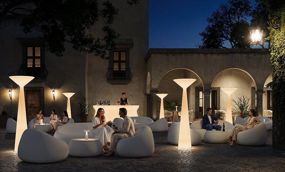 Designed for both outdoor and indoor settings, Tebe can be fully illuminated in its White Light version, or light upwards in the other various colour options.