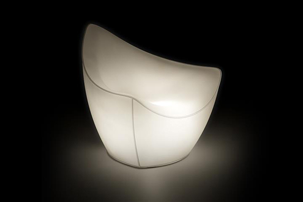 VELA Armchair also stands out for its scenic impact: in the White Light version the armchair can be equipped with a lighting kit, transforming into a luminous object capable of evoking unique atmospheres in the evening hours. The soft light filtering through the furniture makes the seam become a graphic perimeter that emphasizes the geometry of the armchair and the matching coffee table.