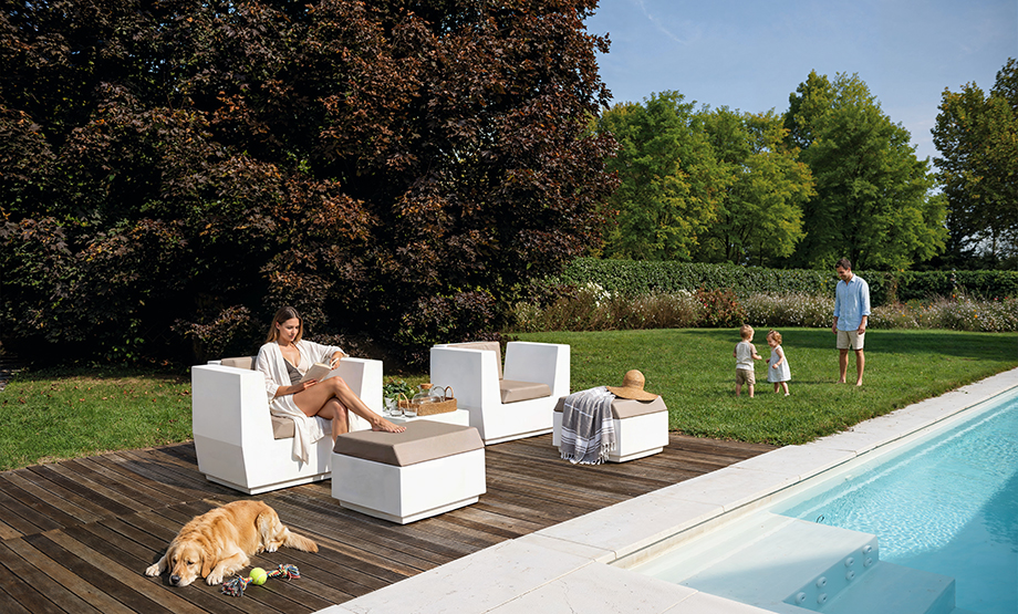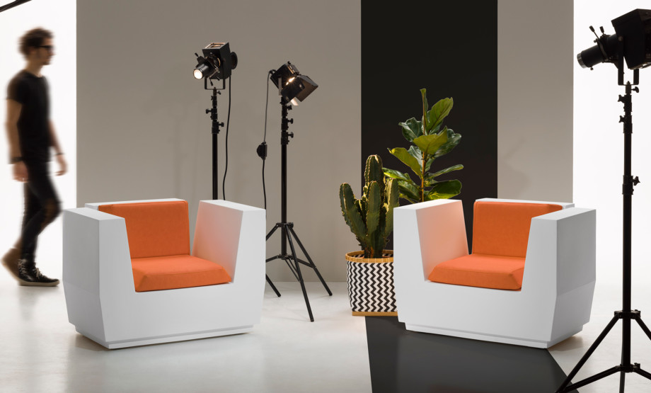 / 2013 diseño Matali CrassetEste cómodo sillón con brazos representa el elemento principal del sistema “Big Cut”, se completa con un cojín mullido; es perfecto para interior y exterior.