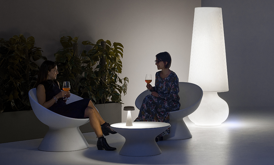 En la versión de luz blanca, la mesa de centro puede ser iluminada equipándola con un kit de iluminación especial.