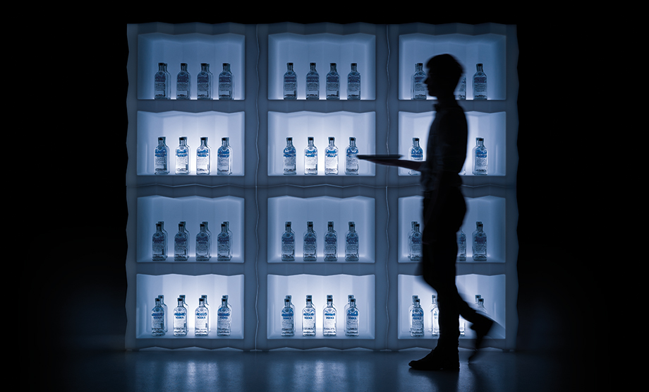 Los costados del display se distinguen ampliamente por las típicas facetas “Frozen” que demuestran carácter, flexibilidad y espíritu familiar. Los módulos display se superponen en dos niveles y pueden adosarse entre ellos. Disponible en la versión luminosa, cada módulo dispone de iluminación independiente para crear paredes de luz donde se prepara un espacio funcional para guardar los instrumentos del bar, las botellas y los vasos. Elemento autónomo modular, “Frozen Display Light” alegra la atmósfera del ambiente nocturno con cambiantes geometrías de luz.