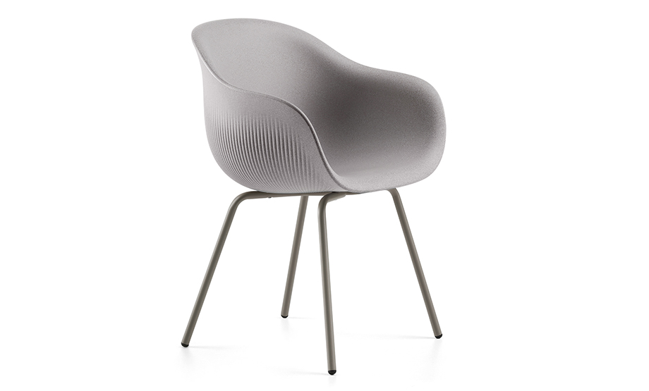 / 2021 design Marco GregoriPoltroncina confortevole dalla singolare superficie rigata con particolari finiture che ricordano materiali naturali. Le gambe sono in metallo verniciato.